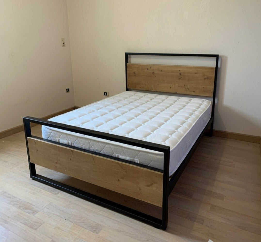 Rome Metal and Wood Platform Bed Frame With Headboard